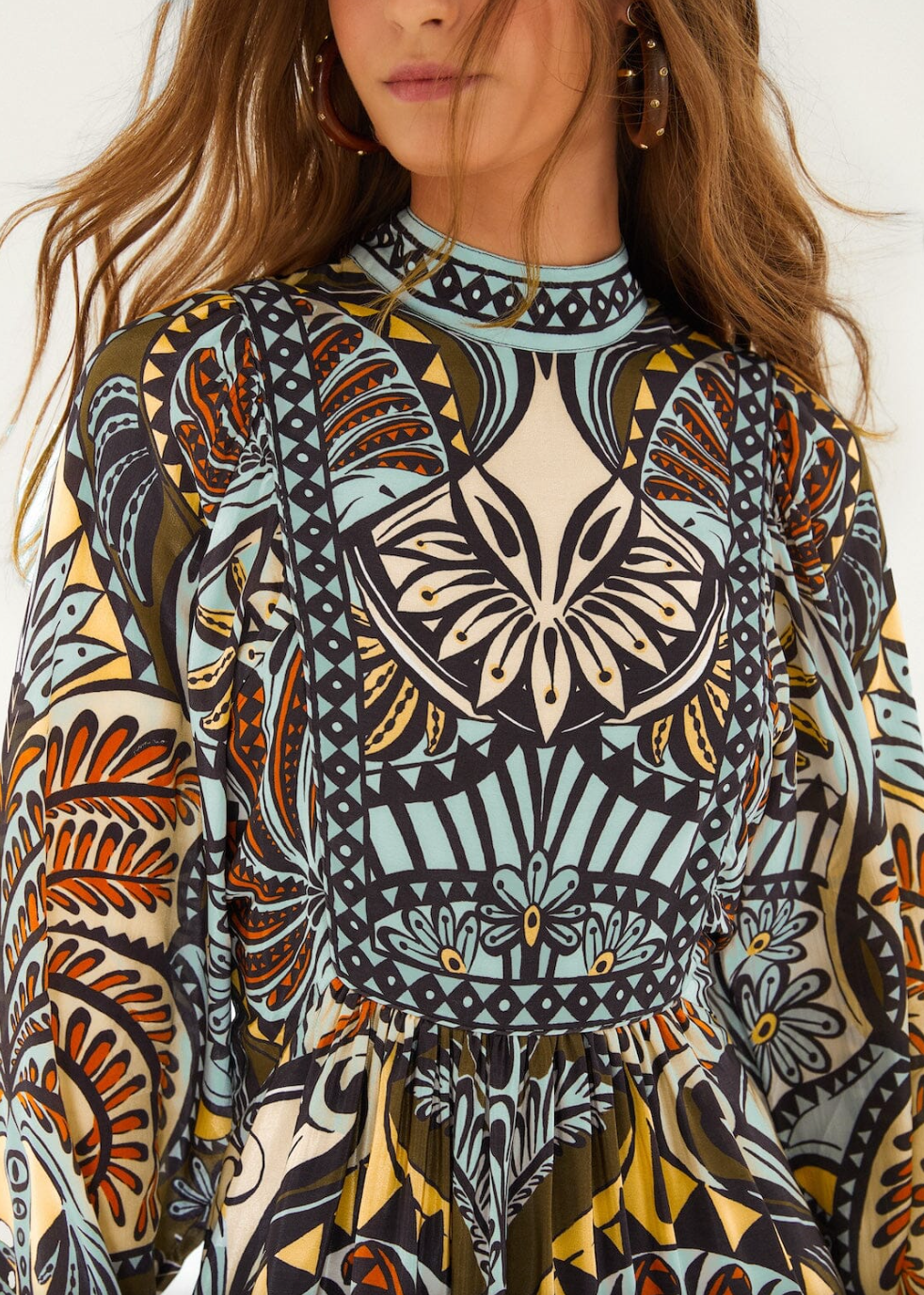 Embrace vibrant joy with the Multicolor Balamana Mini Dress by FARM Rio. This playful silhouette features a high neckline and a flared skirt that dances with every step. Bursting with lively, tropical-inspired patterns in rich, multicolor hues, it captures the essence of carefree energy. Soft, breathable fabric ensures comfort, while subtle ruching adds gentle texture. Perfect for soaking in sunlit moments with effortless charm and cheerful spirit.