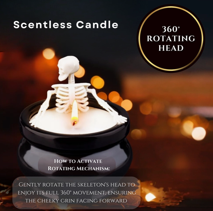 HILARIOUS SKELETON CANDLE - This quirky jar candle features a skeleton lounging in a cozy bath, with its head rotating 360° and sporting a perpetual cheeky grin. When you light this candle on a chilly fall or winter evening, you'll be enveloped in a warm glow while the playful skeleton's expression brings a smile to your face. This gag candle makes a charming and fun addition to any space, perfect for lifting your spirits and adding a touch of humor to your home. Let it fill your surroundings with good vibes! CHIC INDOOR HALLOWEEN DECOR - Whether you're decorating for Halloween or hosting a skeleton-themed party, this eerie ornament is perfect for your needs. Ideal for placing on tables, shelves, cabinets, desks, fireplaces, or walls, this skull candle adds a festive or party atmosphere to any room, be it the bedroom, living room, kitchen, or bathroom. It’s the perfect touch to elevate your Halloween decor and set a spooky mood.