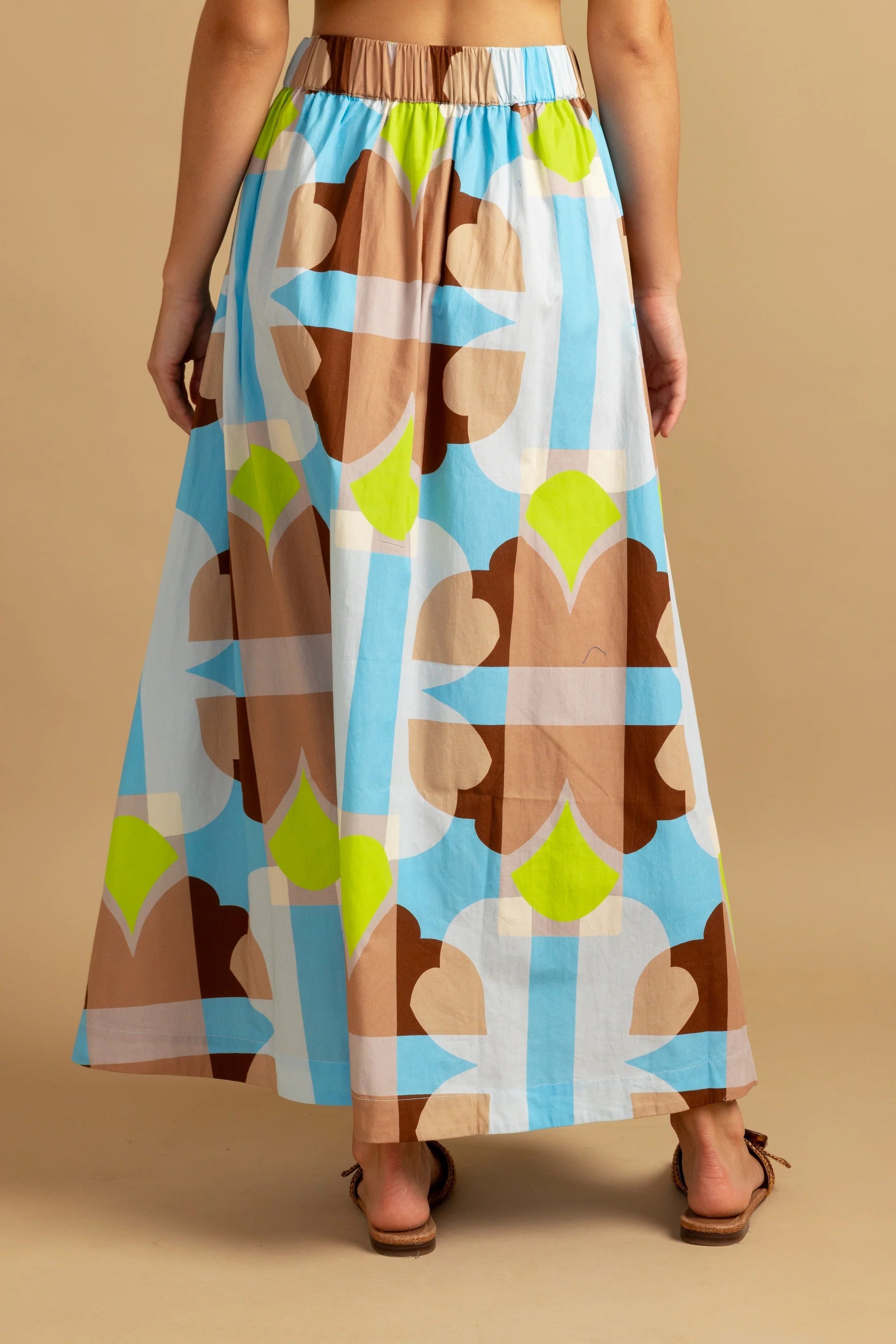 Bold, breezy, and beautifully detailed, the Maeve skirt is a statement piece you’ll reach for all season long. Its flowing silhouette and vibrant print create effortless movement, while the wide border hem adds an eye-catching finish. Easy to dress up or down, it pairs perfectly with a simple top and sandals for an instantly polished look.