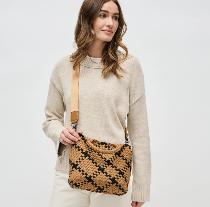 Set your sights high with the Sky's The Limit - Small Crossbody Tote, a testament to chic functionality. Crafted from intricately woven neoprene, this crossbody tote exudes sophistication with its durable, tactile charm. Its versatile design includes a detachable crossbody strap and a matching pouch, ensuring your essentials are always within reach. Ideal for the fashion-forward dreamer, this tote promises to elevate your style quotient while offering an ethereal, lightweight feel for your daily adventures.