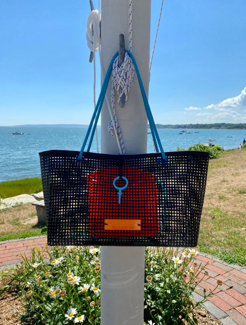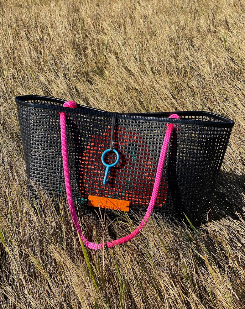Our original Oyster Bag. The Petite is the bag for the everyday. A mid sized handbag made from aquaculture equipment built to last for the toughest of lifestyles and environments. The Oyster Bag has an internal drawstring pouch to hold your phone, keys and personal objects. The Petite Oyster bag is approximately 15X10x6 inches